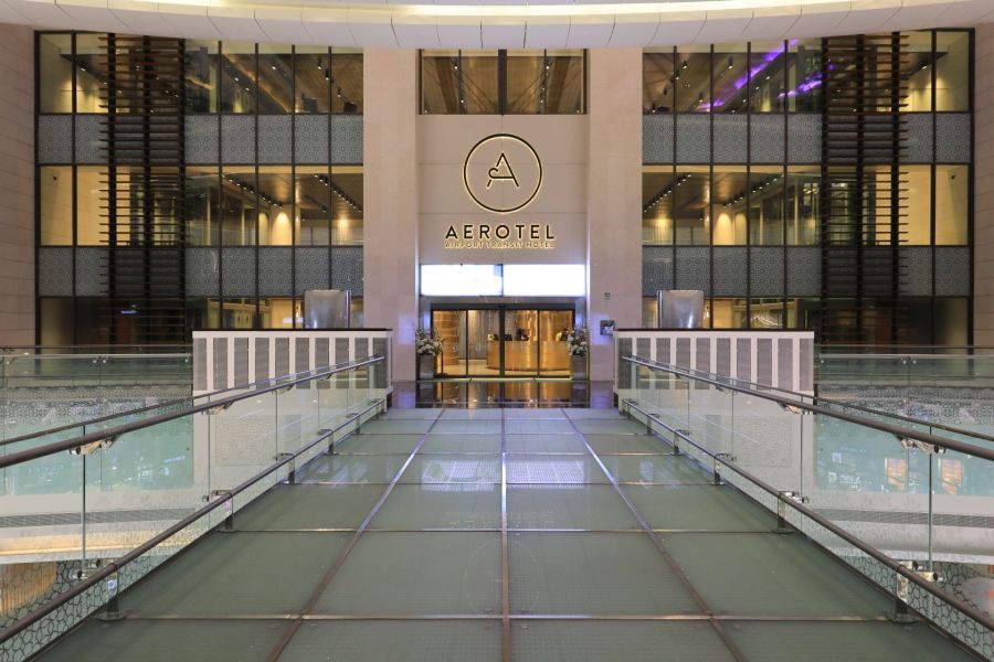 空港内とは思えないほど充実した設備が整ったトランジットホテルを後にし、いよいよオマーン航空の First Lounge に向かいます(とはいえ、トランジットホテルを出て、通路を進むだけですが笑)。