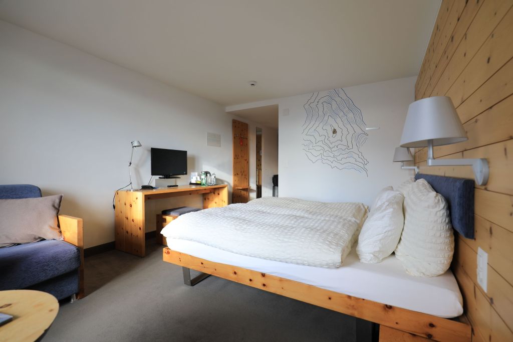 当ホテル、各部屋にアルプスの4,000メートル級の山々の名前が付けられており、壁にはその山の石が取り付けられているという、凝ったデザインになっています。山に触れることをテーマにした、なんともスイスらしい素敵なホテルなんです。