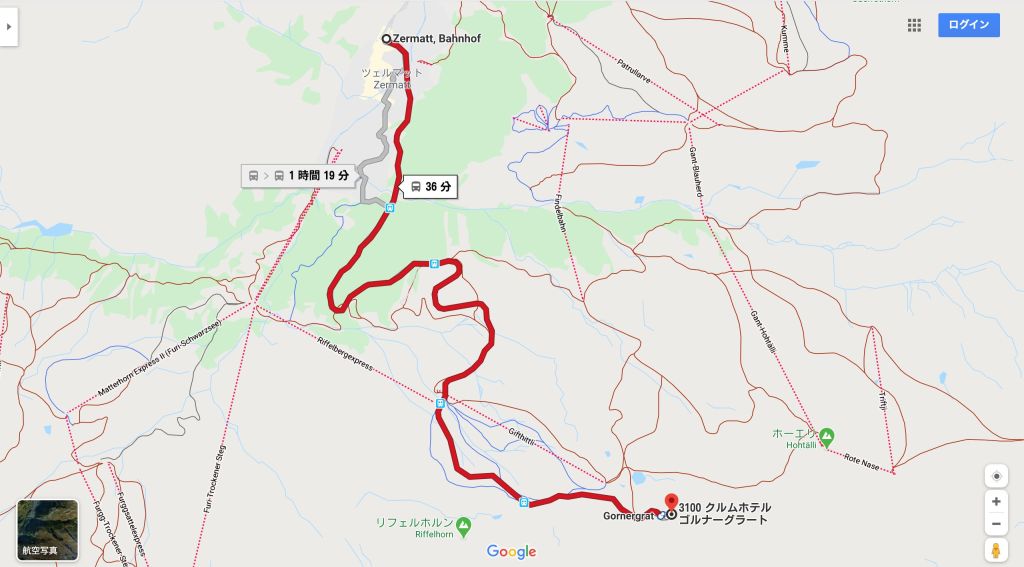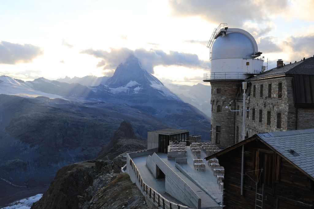 今回は、マッターホルン観光の定番であるゴルナグラート展望台(標高3,100メートル地点)にある老舗ホテル 3100 Kulmhotel Gornergrat に宿泊します。マッターホルンをメインに雄大な景色を間近に望むことのできる特別なホテルとして有名です(公式サイトは独、英、仏、中、日本語←!)。