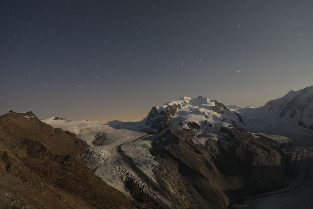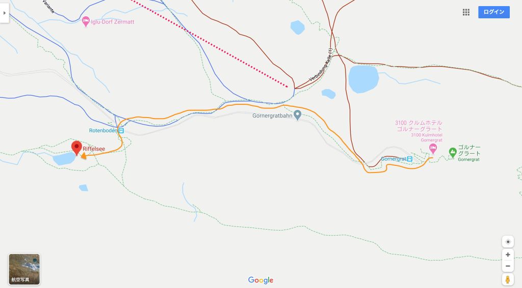 そうしているうちに目的地に着きました。この場所、上の地図にあるように、登山鉄道のRotenboden(終着駅の一つ手前)で降りればすぐなのですが、朝日が昇る時間に電車はないので、ゴルナグラートから歩いて下るか、周辺でテントを張って野宿するしかありません。