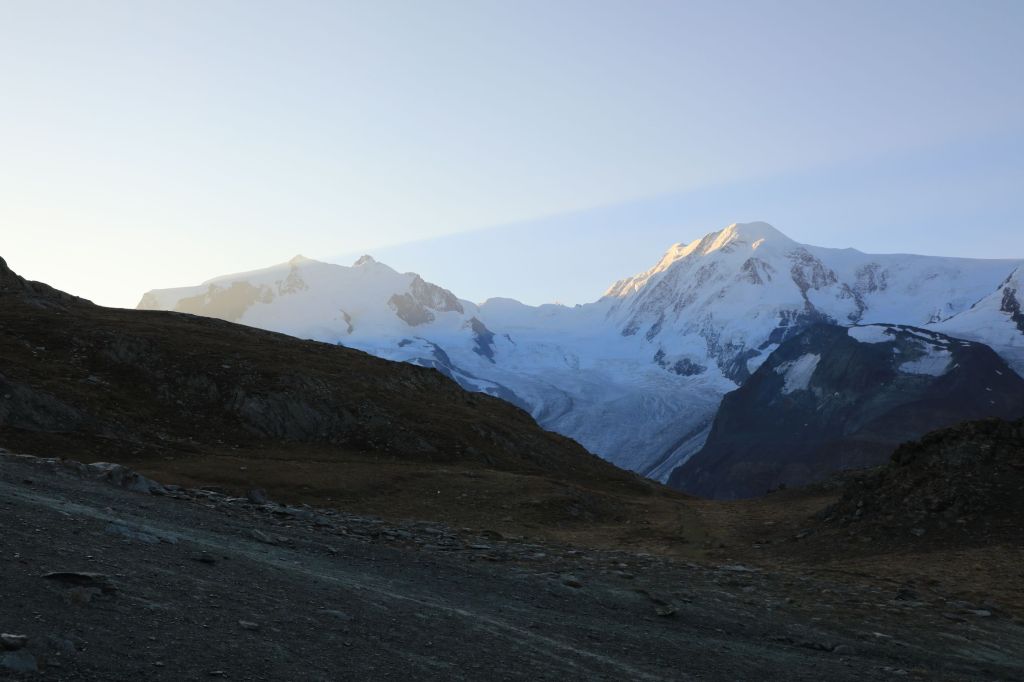 到着した夕方の時間になると、マッターホルンの方は西日で逆光になりますので、うまい具合に神秘的な感じに雲がかかってくれています。