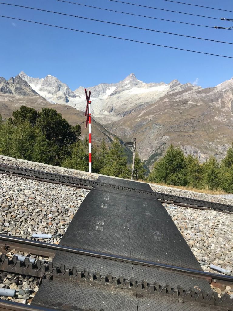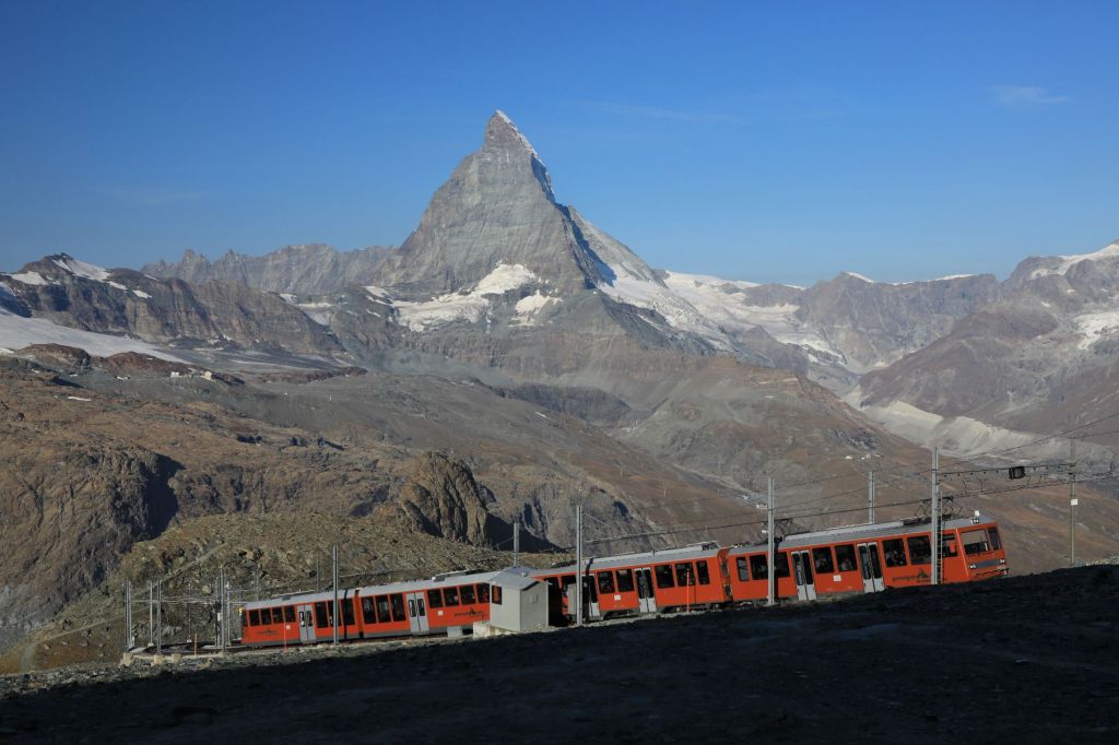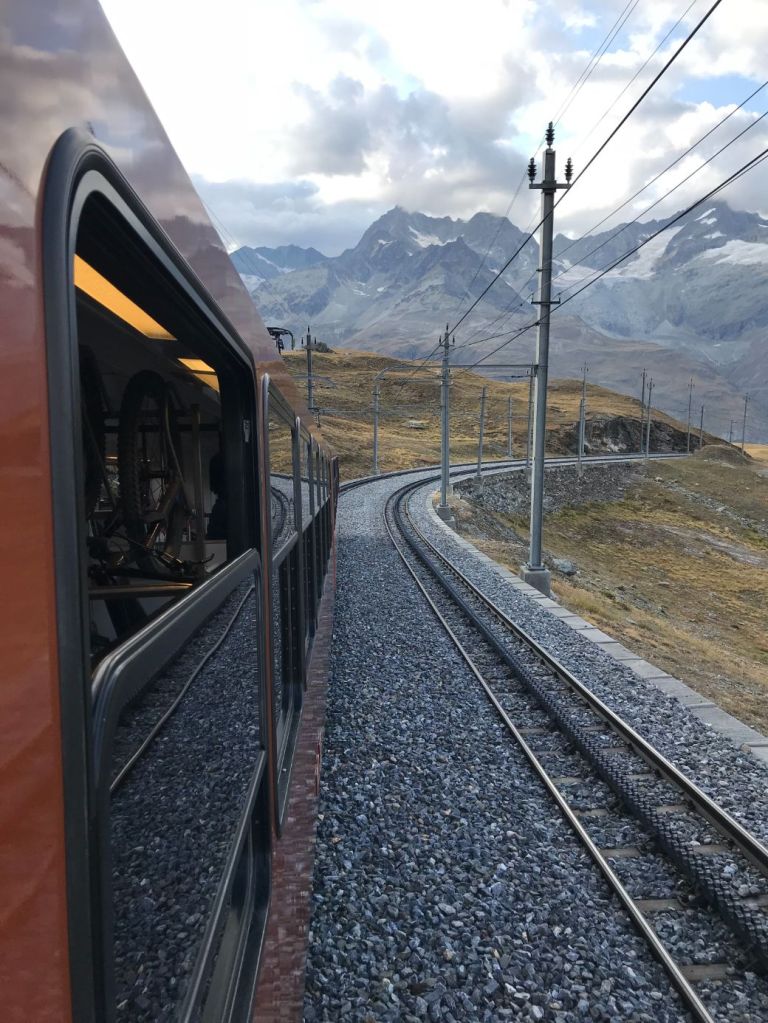 なお、ホテル宿泊のため、キャリーケースを持っていましたが、こちらについてはゴルナグラート駅にあるポーターサービスを利用し、一個千円くらいの値段で麓ツェルマットの鉄道駅で引き取れるようにしてくれるそうです。これで、途中駅で気兼ねなく下車して写真を撮ることができます。実によくできたシステムです。