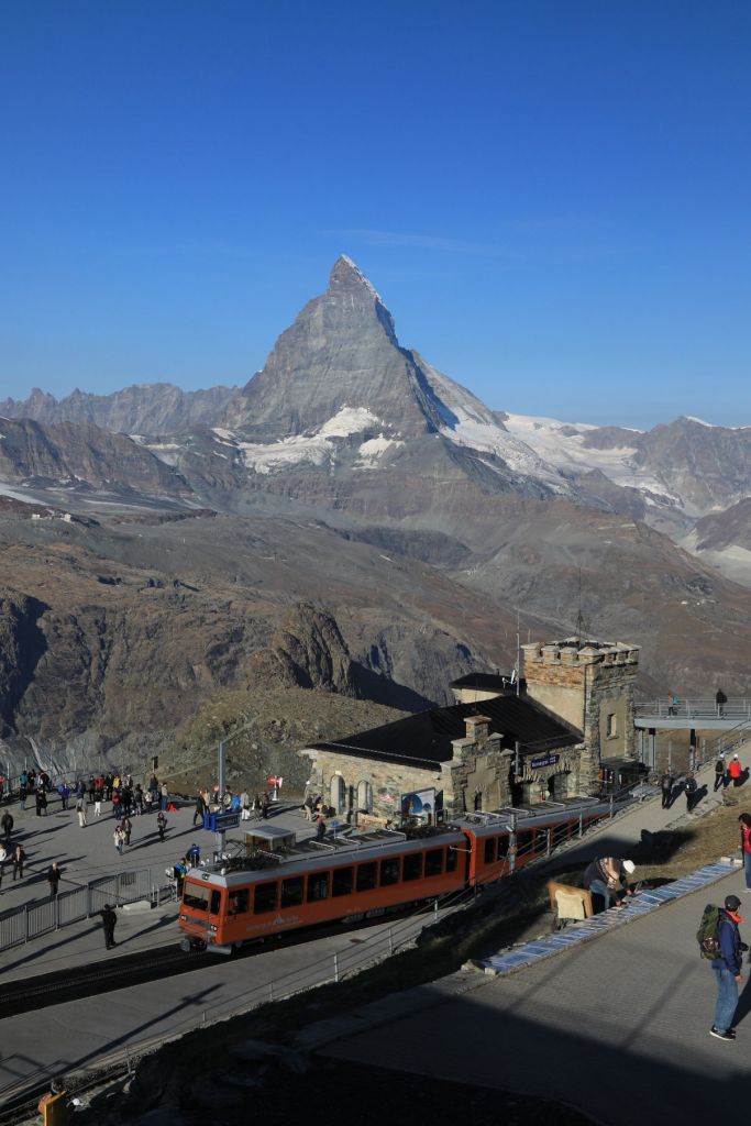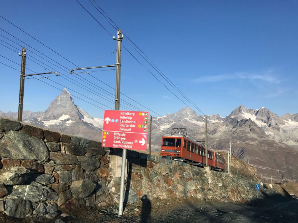 マッターホルンを独り占め(してるかのような気分になれる)素敵なホテルを後にし、下山します。その前に、もう一か所、絵葉書とかによく使われる(印象の)写真スポットに立ち寄ってから下山します。
