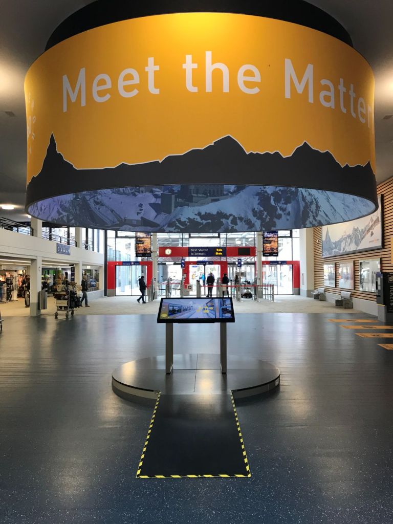 ゴルナグラート展望台に行くには、まずは玄関口となる麓の町、ツェルマットまで電車で向かい、そこから登山鉄道に乗り換える必要があります。ツェルマットは自動車の乗り入れが禁止されているため、車でいく場合、テッシュ(Täsch)という手前の町に車を停めてパーク・アンド・ライドを利用する必要があります(駅併設の立体駐車場を利用)。