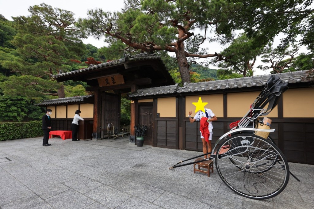 翠嵐は、宿泊者を対象に、①人力車での送迎(嵐山地区の鉄道駅発)、②タクシーでの送迎(京都駅発)という、ラグジュアリーの鏡のようなサービスを実施しております。