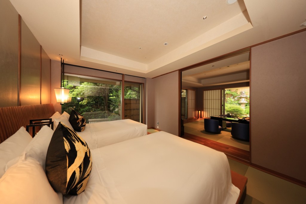 客室本体もさることながら、プライベート庭園のサイズもかなりの敷地を占めており、一組が独占するのは勿体無いくらいです。