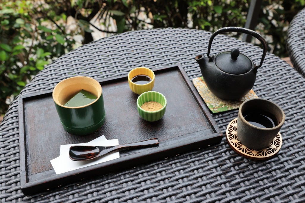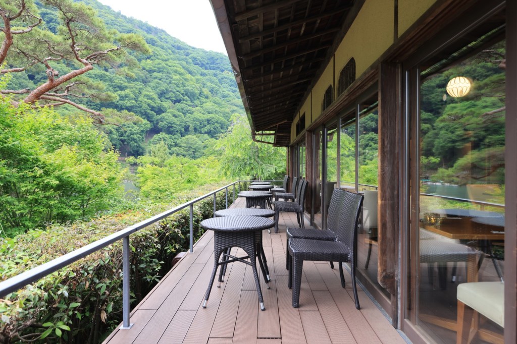 室内でいただくこともできますし、テラス席で保津川を眺めながらいただくこともできます。テラスの場合、少し虫が飛んでいたりもしますが、これも自然豊かな場所ということの現れなのでしょう。虫が気になるという方は防虫スプレー等をお使いになるとよろしいかと思います。