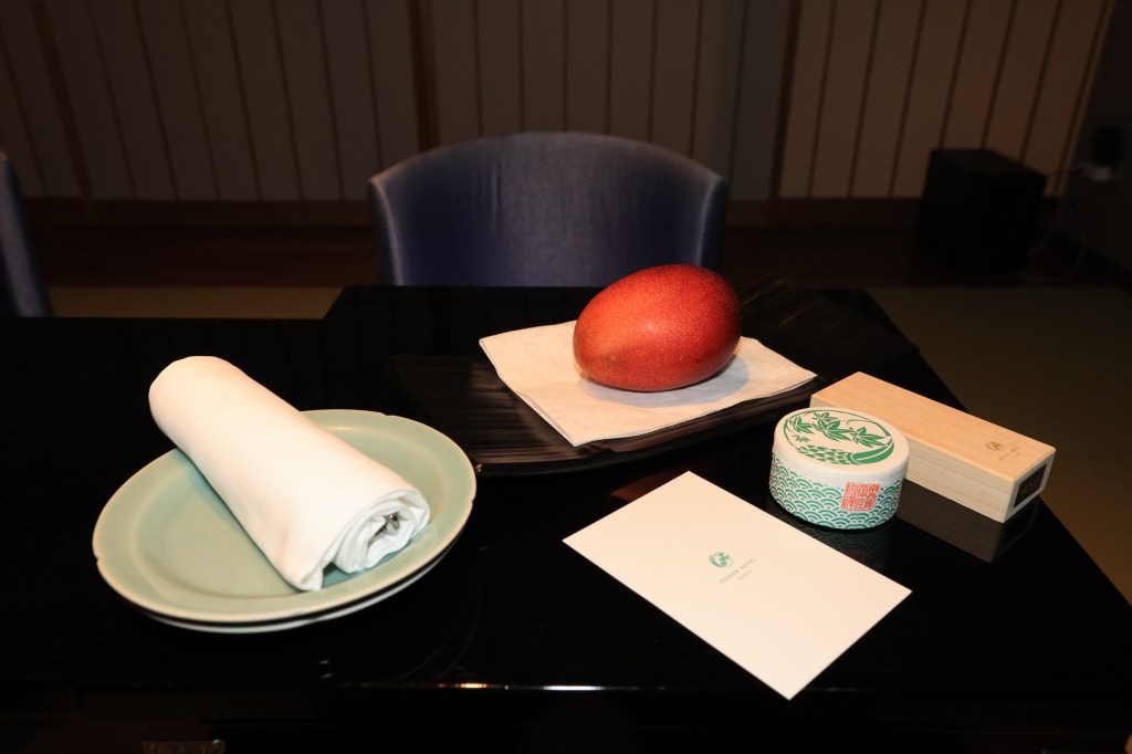 ステータス保有者の会員特典として、①1,000マリオット・ボンヴォイポイント、②翡翠餅のチケット、③グラスシャンパン、の中から一つ選択することができ、シャンパンはシャンパンディライトでいただけるので、②にした次第です。