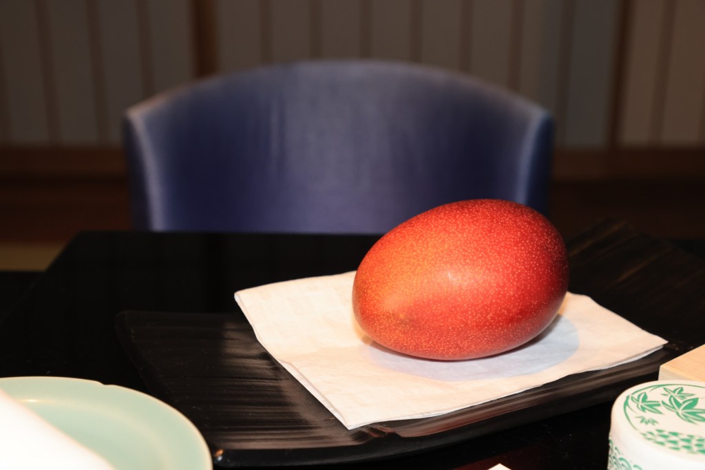 そういえば、ウェルカムギフトとして、テーブルの上に大変立派な完熟マンゴーが置いてありました。