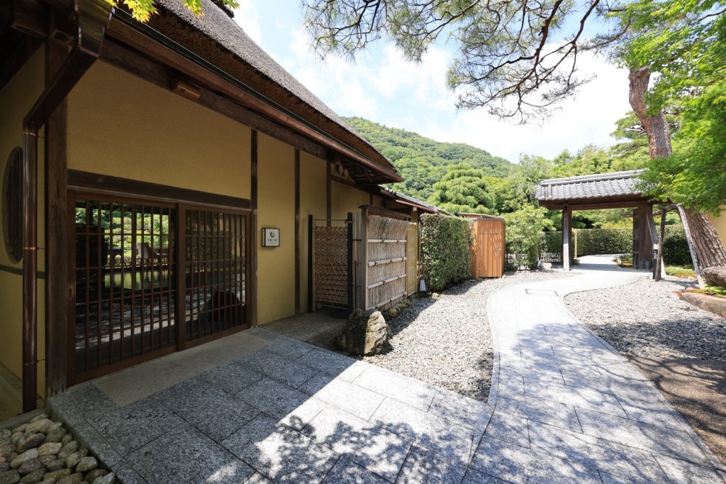 シャンパンディライトは、こちら、『茶寮八翠』というなんとも可愛らしい藁葺き屋根の離れでいただきます。