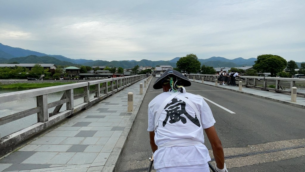 車夫さんによると、今日の渡月橋の混雑具合は、最繁忙期の11月中下旬を「10」とすると、「0.5」程度らしいです(笑)